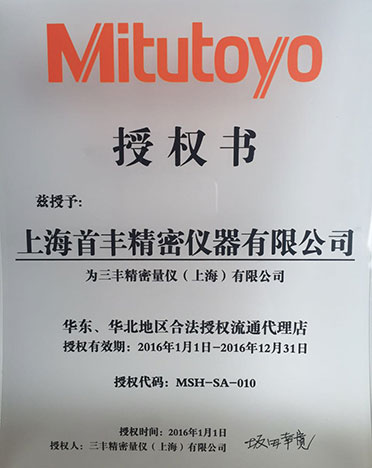 公司于2013年至今連續(xù)十年取得華東、華北合法授權流通代理店和華東、華北合法授權儀器特約店等資格證書,測量儀器類為三豐公司五星級代理,具有強有力的價格優(yōu)勢。2021年,公司秉承"顧客至上,服務優(yōu)先"的經營理念,堅持"竭誠服務"的原則為廣大新老客戶繼續(xù)提供更優(yōu)質的服務!